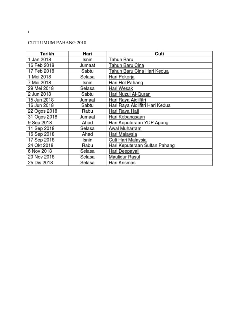 Tarikh berikut mungkin diubah suai. Hari cuti umum negeri pahang 2018 myinformasi. Tarikh berikut mungkin berubah bergantung kepada maklumat.