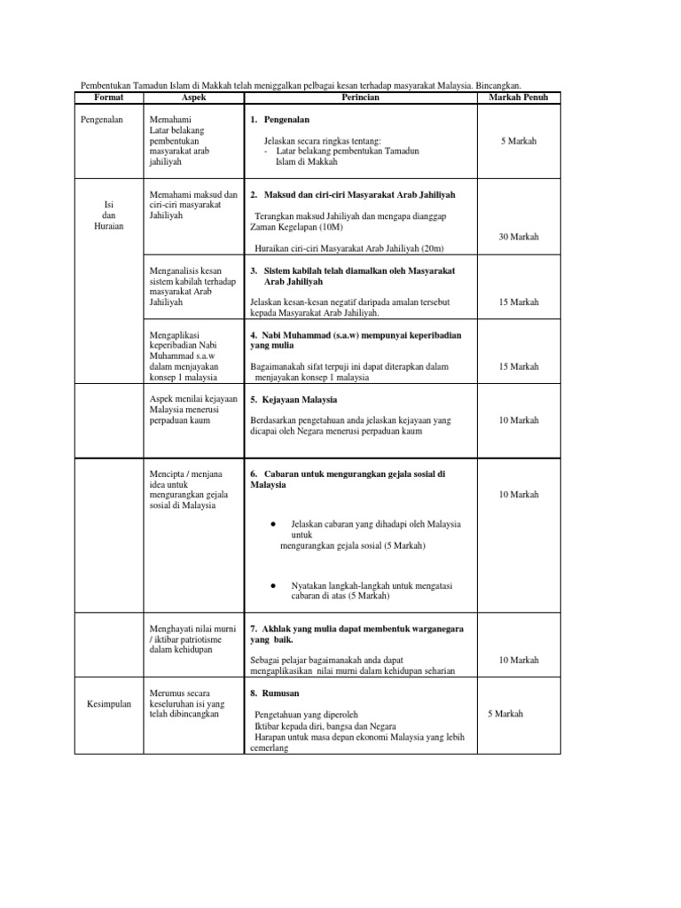 Skema Sejarah Kertas 3 Bai 1 Tingkatan 5 Otosection